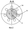 В основаниях шеек выполнено по одному радиальному отверстию: одно 14 со стороны приводной шейки, соединяющее центральный канал с полостью-коллектором для входа охладителя в сквозные отверстия, а другое – 15 со стороны неприводной шейки, соединяющее полость-коллектор выхода охладителя из сквозных отверстий с полостью отвода охладителя.