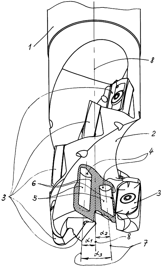 В результате этого повышается жесткость корпуса фрезы и снижаются динамические нагрузки, что, в свою очередь, способствует повышению стойкости фрезы.