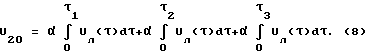 Интегратором 20 осуществляется интегрирование в первых трех циклах (i = 1, 2, 3) выходного линейно нарастающего напряжения Uл интегрирующего блока 22, причем процесс интегрирования начинается с предварительного обнуления интегратора 20 в первом цикле при подаче выходного сигнала U23 элемента И на вход установки в “0” (УО) интегратора 20. Формирование логических потенциалов напряжения U23 осуществляется подачей выходных сигналов UC1 и Ut’i блока управления 17 соответственно на первый и через инвертор 26 на второй входы элемента И, т.е.
