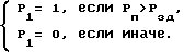 Условия работы узла сравнения позиций:![]() Узел переключения позиций 6 (фиг. 7) предназначен для соединения выходного канала 6-4 (Pвых) то с каналом 6-1 (P8) при условии P1 = 0, то с каналом 6-2 (P9) при альтернативном условии P1 = 1. Для этого входной канал 6-3 (P1) соединен с глухой камерой “+” пневмореле с пружиной 34, выполняющего роль сдвоенного клапана (см. выше), а его проточные камеры соединены с каналами 6-1 (P8) и 6-2 (P9). Выход элемента 34 поступает на выход регулятора 6-4 (Pвых). Задатчики 31, 32 и 9 (фиг. 8) выполнены в виде корпуса 38, в котором установлена подпружиненная мембрана 39 и сопло 37, сообщенное с атмосферой. Регулятор работает следующим образом. В узле соединения 1 (фиг. 2) происходит сложение входных сигналов Pзд (задания) и Pп (переменно-регулируемой величины). Выходной сигнал P’1 узла сравнения 1 (фиг. 2) поступает на узел формирования зон неоднозначности 2 (фиг. 3), где в зависимости от величины P’1 происходит срабатывание элементов 12, 13, 14, 15, имеющих различные условия срабатывания (см. выше), при этом формируются дискретные импульсные сигналы продолжительностью P2 или P3.