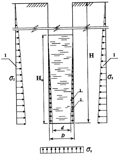 где 1 – осевое напряжение, МПа; л – удельный вес льда, МН/м3; Н – глубина скважины, м.