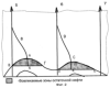 Пример по первому варианту. Осуществление данного способа рассмотрим на примере конкретного участка нефтяного месторождения. Начали разбуривать участок месторождения. Пробурили скважины 5, 7 (фиг.2). Пустили скважины 5, 7 в эксплуатацию. Уточнили геологическое строение. Проектные скважины разместили на вершинах куполообразных поднятий (6), построенных по данным бурения скважин 5 и 7. Пустили скважины в эксплуатацию. Законтурная вода начала вытеснять нефть. Образовались две застойные зоны 10 и 11 из-за гравитационных сил. Дополнительные данные по этой скважине показали, что образовались две вершины куполообразных поднятий. С ближайших скважин 5 и 6 пробурили боковые стволы 8 и 9 со вскрытием вершин куполообразных поднятий 10 и 11 в интервале продуктивного пласта между абсолютной отметкой кровли (точки А и С) в боковых стволах до абсолютной отметки кровли пласта в ближайших скважинах (точки Б и К) соответственно для боковых стволов 8 и 9. Пустили скважины 5 и 6 с боковыми стволами в эксплуатацию. Из скважин 5 и 6 через боковые стволы начали добывать нефть из застойных зон. Подсчитали геологические и извлекаемые запасы нефти участка 500 и 215 тыс.т. соответственно и застойных зон, введенных в разработку предлагаемым способом, 70 и 35 тыс. т.