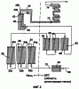 Фиг.2 схематично иллюстрирует предпочтительные пути прохождения пароводяного потока через котельную установку 10, показанную на фиг.1. На обеих фиг.1 и 2 используются одинаковые ссылочные позиции для идентификации одних и тех же частей системы. Вертикальная пунктирная линия разделяет части путей прохождения пароводяного потока, расположенные в ОРТ и печи.