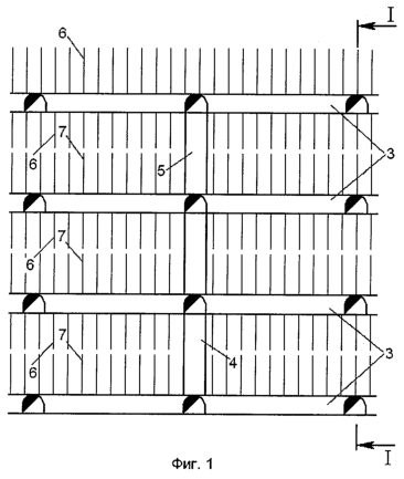 Сущность изобретения представлена на чертежах, где фиг.1 – проекция на вертикальную плоскость способа разработки крутопадающих месторождений средней мощности, фиг.2 – вертикальный разрез по линии I-I.