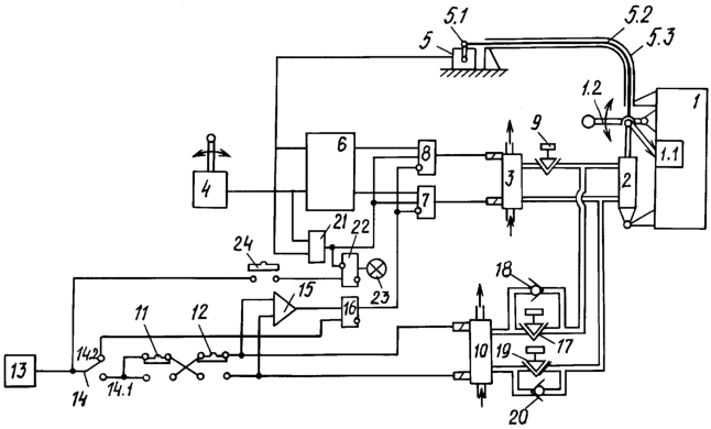 Исполнительный механизм 2 подключен гидравлическими каналами к электрогидравлическому распределителю 3.
