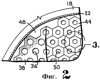 Заплечики 44 втулок 40 должны иметь такую форму, чтобы они без зазора прилегали друг к другу и образовывали уплотнение поверх изоляционного щита 38. Заплечики идут от хвостовиков в направлении радиально наружу, причем каждый заплечик имеет кромку, смещенную радиально от хвостовика. Эта кромка имеет поверхность уплотнения. Заплечик может иметь любую многогранную или иную форму, которая позволяет без зазора контактировать заплечикам друг с другом, без применения литого или пластичного огнеупорного материала между втулками. Поверхности уплотнения заплечиков должны герметично прилегать друг к другу. Преимущественно заплечики имеют один и тот же размер и одинаковую форму. Кроме того, заплечики преимущественно являются равносторонними. Преимущественно заплечики имеют форму многогранника, а предпочтительно заплечики 44 имеют форму равносторонних шестигранников и сцепляются друг с другом с образованием ячеистой структуры, которая функционирует в качестве уплотнения поверх изоляционного щита 38.