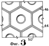 Каждый хвостовик 42 входит без зазора через отверстие 36 в изоляционном щите 38 в трубу 28. Втулки 40 имеют заплечики 44 с такими поверхностями, которые герметично прилегают друг к другу. На фиг.2-7 показаны заплечики 44 шестигранной формы. Втулки 40 без зазора контактируют друг с другом, так что образуется уплотнение (уплотнительное соединение) поверх изоляционного щита 38, как это показано на фиг.2 и 3. Литой или пластичный огнеупорный материал 48 используют для заполнения периферических зон, где заплечики втулок не прилегают без зазора к внутренней части огнеупорных кирпичей 22, как это показано на фиг.2. Втулки 40 имеют сквозные отверстия 50, как это показано на фиг.2-5, предназначенные для транспортировки газа из реактора 12 во внутреннее пространство труб 28 в бойлере 14.