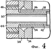 Как заплечик 44, так и хвостовик 42 каждой втулки 40 обернут изоляцией 46. В качестве изоляции может быть использована высокотемпературная бумага из керамического волокна или изоляционное покрытие. Бумага должна иметь толщину от 1/32 до 1 дюйма (от 0,08 до 2,54 см). Преимущественно используют бумагу толщиной от 3/16 до 1/4 дюйма (0,48-0,63 см). Изоляционный материал может содержать оксид алюминия, диоксид кремния, оксид натрия и оксид железа. В качестве примера подходящей бумаги можно указать бумагу, которая содержит 54,8% оксида алюминия, 44,0% диоксида кремния и 0,2% оксида натрия. Несмотря на то что подходящая бумага может содержать менее чем 50% оксида алюминия, преимущественно она содержит по меньшей мере около 50% оксида алюминия, а предпочтительно по меньшей мере около 90% оксида алюминия. Преимущественно бумага из керамического волокна имеет коэффициент теплопроводности не более 1,6 BTU-in/hr ft2 °F, измеренный при 2000°F (0,231 Вт/м К, измеренный при 1093°С). Преимущественно бумага имеет температуру плавления по меньшей мере около 3600°F (около 2000°С). Преимущественно бумага имеет температуру постоянного использования по меньшей мере около 2800°F (около 1500°С). Бумагу перед использованием преимущественно подвергают тепловой обработке для удаления любой поглощенной воды и/или органических материалов.