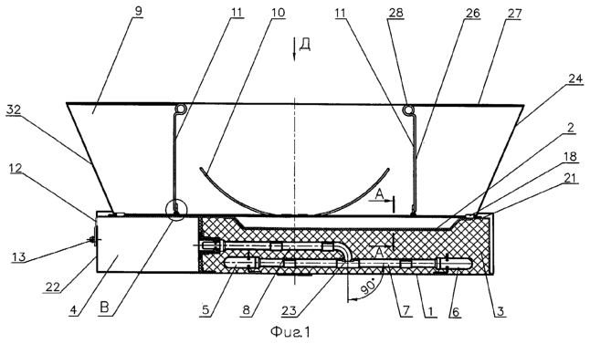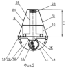 На фиг.2 показаны вид мины со стороны взрывательного устройства (4) и поперечный разрез раскрытого складного ориентирующего устройства-стабилизатора (24).