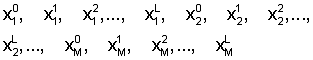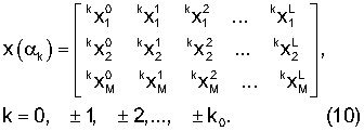 Каждая из выборок в указанном наборе отвечает контрольному направлению с тем же значением индекса k. Более удобно представлять соответствующую выборку наблюдений для каждого контрольного направления в виде матрицы, размером M*(L+1)