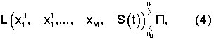 – логарифм отношения правдоподобия, вычисленный с точностью до множителей, не зависящих от наблюдений, П – порог, устанавливаемый по уровню шумов и обеспечивающий заданную вероятность ложного обнаружения.
