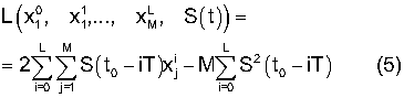 где S(t) – отраженный сверхширокополосный сигнал неизвестной формы, t0 – момент времени, в который сформирована выборка наблюдений, – выборка шумовых компонент, распределенных по нормальному закону с нулевым средним и дисперсией 2, наблюдаемых на выходах линий 6 задержки.