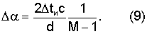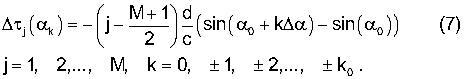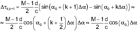 Аналитическая формула относительной задержки, возникающей на крайних элементах 7 задержки для соседних контрольных направлений с индексами k и k+1, имеет вид:
