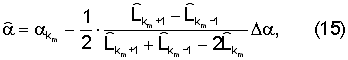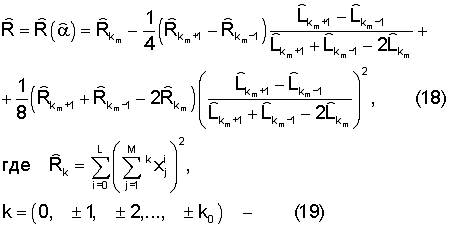 оценка дисперсии, построенная по выборке, сформированной из i-го столбца матрицы наблюдений Х( k). Используя (13), (14), после несложных преобразований можно получить интерполяционное соотношение второго порядка для расчета ОМП направления прихода отраженного сигнала