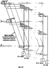 Показанный на фиг.7 пример управления опорными направлениями с помощью весовой обработки является общим для второго варианта рассматриваемого способа локации цели. Для упрощения этой блок-схемы можно использовать различные интерполяционные методы, например методы восстановления сигналов в промежуточные моменты времени с помощью квадратичной формулы либо с помощью системы импульсных функций, пропорциональных выражению используемому в теореме отсчетов Котельникова-Найквиста. Наиболее простой является линейная интерполяция. Она относится к большому классу интерполяционных оценок, базирующихся на ограниченном числе опорных точек, связываемых с нужной промежуточной (интерполируемой) позицией. В основе таких методов лежит свойство, заключающееся в том, что при некотором «запасе» по частоте дискретизации (например, для линейной интерполяции указанный «запас» подразумевает превышение граничного значения Котельникова-Найквиста в 2-2,5 раза) можно с большой степенью точности восстановить форму сигнала с помощью линейных комбинаций. В этом случае отпадает необходимость учитывать все сигналы, присутствующие на отводах линий 6 задержки для восстановления состояния в промежуточной позиции, достаточно использовать только опорные точки, совпадающие с границами интервала времени, в который попадает промежуточный момент. На фиг.8 показана блок-схема по фиг.7 для случая линейной интерполяции сигнала в промежуточных позициях для заданного опорного направления. При этом число операций взвешивания, равное в общем случае M(L+1), сократится до 2М. При такой линейной интерполяции находят веса линейных комбинаций сигналов на выходах элементов 7 задержки в разных каналах 1 наблюдения и используют эти найденные веса линейных комбинаций сигналов для формирования условных оценок формы принимаемых импульсов на заданном множестве дискретных временных позиций, согласующихся с одним из выбранного множества опорных направлений.