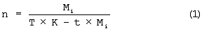 Применение в импульсных генераторах нейтронных трубок типа ТНТ-1411 сопровождается нестабильностью выхода нейтронов в импульсе. В зависимости от конкретной трубки, схемы ее включения и срока эксплуатации разброс выхода нейтронов в импульсе может составить 50-100%. Наличие “мертвого” времени регистрирующей системы при нестабильном выходе нейтронов и суммировании данных от многократных нейтронных вспышек до введения поправок за “мертвое” время приводит к неконтролируемым ошибкам. Рассмотрим это более подробно. Пусть мы проводим измерение в фиксированном временном окне шириной Т. При этом на один глубинный /временной квант информации приходится К срабатываний нейтронной трубки импульсного генератора. “Мертвое” время детектирующей системы равно t. Mi – зарегистрировано импульсов после однократной вспышки генератора во временном окне. При постоянном выходе нейтронов в импульсе “истинная” скорость счета п определяется по формуле