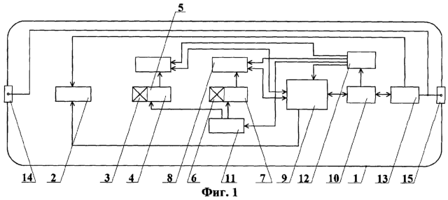 При этом блок развязки питания импульсного генератора нейтронов 13 может представлять из себя, например, обыкновенный LC-фильтр; блок приема-передачи информации 10, вторичный источник питания 12, программно-управляемые усилители большого зонда 8 и малого зонда 5, импульсный генератор нейтронов 2, охранный кожух 1 могут быть реализованы аналогично прототипу. Высоковольтный источник питания ФЭУ 11, нижний разъем для подключения к каротажному кабелю 14 и верхний разъем для подключения к каротажному кабелю 15 могут быть реализованы аналогично соответствующим блокам [5]. Блок центрального процессора 9 может представлять из себя узел на основе микропроцессора, например на основе AT90S8535, имеющего в своем составе память программ, таймеры для задавания временных интервалов, счетчики входящих импульсов, оперативную память для хранения зарегистрированных временных спектров, необходимую вычислительную мощность для проведения процедур вычисления просчетов, восстановления за мертвое время регистрирующего тракта, суммирования временных спектров в глубинный/временной квант.