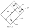 Датчик углового положения 10 представлен на фиг.5 и состоит из гравитационного датчика маятникового типа 44 с кодовым диском 45 на оси 46 и узла считывания кода фотоэлектрического типа 47, жестко закрепленного на корпусе датчика 48.