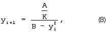 при этом коэффициент эмпирической коррекции Кэк определен в блоке 10. В блоке 6 формируется сигнал итерации с учетом начального значения y0=0 посредством деления сигнала на сигнал (B-yi 2).