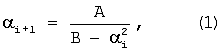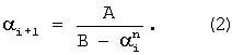 Анализ зависимости (2) даже при n=1 показывает, что при определенном соотношении параметров А и В возможна неустойчивость процесса итерации. Процесс итерации при i определяет корректное действительное значение корня алгебраического уравнения на основе (1) и (2). Действительно, при n=1 алгебраическое выражение для (2) разрешимо относительно :