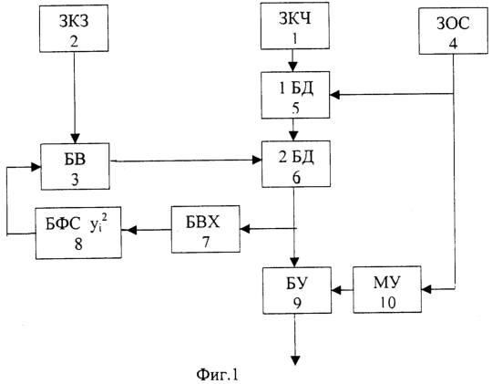 Блок формирования сигнала вида уi 2 – 8 (БФС yi 2), где уi – сигнал на выходе блока выборки и хранения 7, содержит задатчик единичного сигнала 11 (ЗЕС) и два устройства умножения 12 (1 УУ) и 13 (2 УУ), вход блока соединен через два последовательно соединенных устройств умножения 12 и 13 с выходом блока и со вторым входом второго устройства умножения 13, а второй вход первого устройства умножения 12 соединен с выходом задатчика единичного сигнала 11.