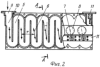 Конструкция сканирующего делителя мощности (СДМ) приведена на фиг.2 и 3. Он состоит из синусоидального волновода 5, свернутого в плоскости Е, и системы волноводно-полосковых направленных ответвителей 6 с коаксиальными выводами 7 и полосковыми нагрузками 8. Для обеспечения согласования синусоидального волновода в двух поддиапазонах частот его период L выбран кратным нечетному числу полуволн для средних частот обоих поддиапозонов: L=(n1 в1)/2=(n2 в2)/2, где n1, n2 – нечетные числа (например, n1=3; n2=5), а в1, в2 – длины волн в волноводе, причем в1> в2. С учетом требуемого сектора сканирования это обуславливает выбор сечения волноводного канала 5. Согласование волноводного канала 5 со стандартным сечением входного волновода 9 осуществляется ступенчатым переходом 10. При этих условиях отражения от двух соседних изгибов синусоидального волновода оказываются сдвинутыми по фазе на 180° (так как расстояния между ними будут кратными нечетному числу четвертей длин волн) и компенсируют друг друга. Отражения от направленных ответвителей, разнесенных по волноводу на нечетное число полуволн, на этих частотах будут складываться, но ввиду хорошего согласования ответвителей результирующее значение коэффициента стоячей волны по напряжению (КСВН) будет невелико. Согласование в рабочей полосе частот обоих поддиапазонов, как и в любой периодической структуре, обеспечивается благодаря непрерывному набегу фаз отраженных от изгибов и ответвителей, проходящих через делитель сигналов.
