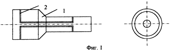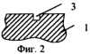 Предлагаемый способ формирования трехмерной толстопленочной схемы реализован следующим образом. Был изготовлен сверхпроводниковый трансформатор магнитного потока, содержащий два неполных витка различного диаметра (10 и 780 мм), соединенные дорожками длиной 120 мм (фиг.1), используемый для усиления магнитного потока внутри витка меньшего диаметра. Коэффициент усиления трансформатора определяется отношением площадей витков. Была изготовлена подложка (фиг.1) методом гидростатического прессования и обжига из порошка MgO с добавкой 5% органической связки. Режимы прессования и обжига были штатными (Р=6-8 ГПа, Тmax=1700°С). На подложке лазерным фрезерованием были выполнены канавки глубиной и шириной 1 мм. Была приготовлена паста, содержащая порошок Bi(2212) и 5% органической связки. После гомогенизации пасту втирали в канавки схемы и фиксировали путем нанесения пленочного покрытия. Покрытие наносили намазыванием кисточкой. Пленочное покрытие представляло собой пенопласт, растворенный в ацетоне с добавкой порошка серебра (соответственно 15 и 10 мас.%). После конвекционного высушивания пленки подложку помещали в печь сопротивления, где проходило вжигание по типовой схеме (Тmax=885°С, t=40 часов). Готовая схема обладала сверхпроводниковыми свойствами (Tкр=95 К, iкр=960 А/см2) и выполняла необходимые функции. Сравнение величины критического тока при использовании пленочного покрытия без введения стимулирующей добавки показало уменьшение в том случае критического тока на 10-15%.