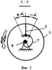 Это происходит вследствие того, что ролик 11 неподвижного упора 12, перекатываясь по наклонному участку 10 кулачка 9, отжимает его вместе с баллоном 2, свободно перемещающимся вдоль вала 4 (в направлении стрелки К) влево (фиг.4б, в). При этом левая пружина 7 испытывает деформацию сжатия, а правая – растяжения. Одновременно обе пружины 7 закручиваются (на участке контакта кинематической пары кулачок 9 – упор 12) на угол (фиг.3) при непрерывном вращении баллона 2.