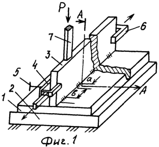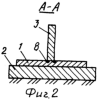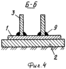 На фиг.1 показана схема прихватки ребра и плиты неплавящим электродом; на фиг.2 – сечение по А-А на фиг.1; на фиг.3 изображена схема окончательной сварки ребра и плиты, на фиг.4 – сечение по Б-Б на фиг.3.