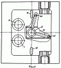 Управляющее устройство содержит также рычаги 47, соединенные подвижно с одной стороны с толкателями электромагнитов 48, а с другой – с толкателями пневмоклапанов 9, 10 (Фиг.3). Входной валик 31 устройства состоит из трех частей 51, 52, 53, соединенных между собой соосно разъемными соединениями (Фиг.3), причем на валике 53 закреплена стрелка 54.