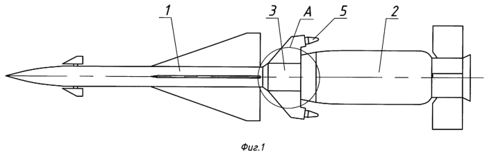 На фиг.1, 2, 3 приведена конструкция радиоуправляемой ракеты, где:
