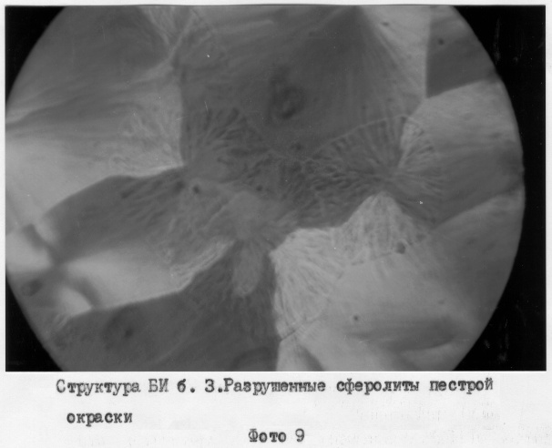 Пример 6, фиг.9. Б-ная 3. Диагноз: ХП в стадии обострения. На фиг.9 присутствуют разрушенные сферолиты пестрой окраски.
