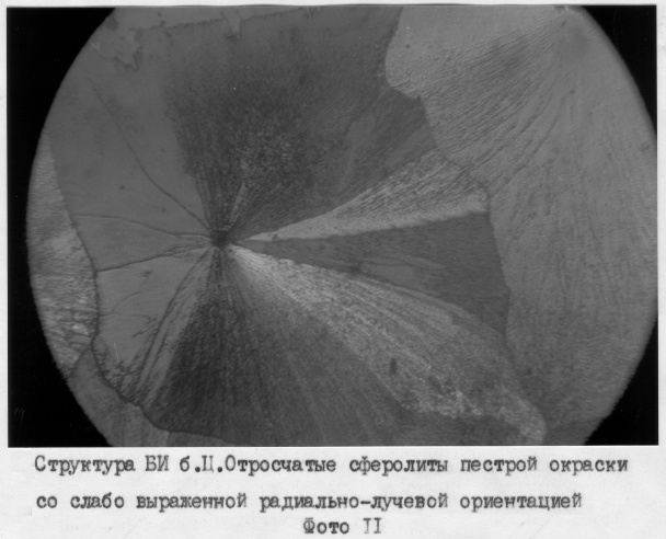 Пример 8, фиг.11. Б-ой Ц. ИБ №198. Диагноз: ХП в стадии ремиссии. На фиг.11 присутствует отросчатый сферолит пестрой окраски со слабо выраженной радиально-лучевой ориентацией.