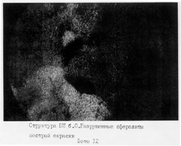 Пример 9, фиг.12. Б-ой О. ИБ №28. Диагноз: ХП в стадии обострения. На фиг.12 приведены пестрой окраски разрушенные сферолиты.