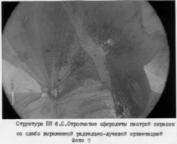 Пример 4, фиг.7. Б-ой С. Диагноз: ХП в фазе ремиссии. ИБ №94. На фиг.7 присутствует пестрой окраски отросчатый сферолит со слабо выраженной радиально-лучевой ориентацией.