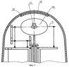 Дополнительно на внутренней поверхности в верхней части защитного радиопрозрачного колпака 28 расположен параболический рефлектор 29, а на оси 9 вместо параболического рефлектора антенны расположен контррефлектор 30, образующие антенну перископического типа, при этом излучатель антенны 17 расположен неподвижно соосно с осью рефлектора и жестко соединен с неподвижным волноводом 15 без волноводных шарниров 18 и 19. Излучение от излучателя 17 попадает на параболический рефлектор, расположенный в верхней части к защитного колпака 28, параллельными лучами отражается на контррефлектор и излучается в пространство через боковую часть защитного радиопрозрачного колпака 28. При этом происходит изменение направления излучения.