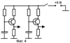 Блок предустановки, схема которого показана на фиг.4, предварительно устанавливает все делители частоты на два в нулевое исходное состояние и вместе с делителем 12 частоты на два обеспечивает первоначальное срабатывание делителей 13 и 14 частоты на 2 от соседних положительных фронтов сигналов на их входах, вследствие чего создаются необходимые фазовые соотношения трех напряжений на выходах генератора. Это обеспечивается следующим образом. При включении питания заряжаются конденсаторы в базовых цепях транзисторов (фиг.4). Постоянная времени цепи заряда второго конденсатора меньше, чем первого, и заданный уровень положительного напряжения на выходе второго транзистора появляется раньше, чем первого. Напряжение с выхода второго транзистора поступает на входы R триггеров в делителях 13 и 14 частоты на 2 и устанавливает эти триггеры в одинаковое (нулевое) исходное состояние. После этого заданный уровень выходного напряжения появляется на выходе первого транзистора, это напряжение подается на вход R делителя 12 частоты на два и обеспечивает его рабочий режим (режим деления частоты). Первые положительные перепады напряжения на выходах этого делителя обеспечат переключение триггеров в делителях 13 и 14 частоты, т.е. синхронизм работы этих делителей и, следовательно, синхронизм выходных напряжений генератора.