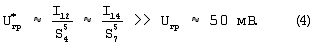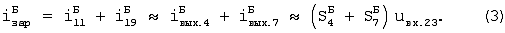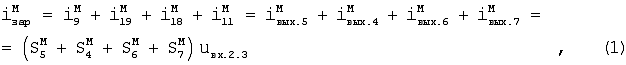 Во втором случае, когда uвх.2.3>Uгp=50 мВ, входной каскад, выполненный, например, по схеме фиг.7 или фиг.9, переходит в режим ограничения токов по выходам 5 и 6 (их абсолютные значения становятся близкими к нулю) и режим дальнейшего пропорционального (входному сигналу) приращения токов по выходам 4 и 7: