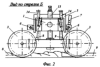 1. На фиг.5 показан общий вид электрифицированного варианта мостового агрегата с дополнительными устройствами, обеспечивающими автоматическое перемещение каретки 5 при проходе агрегатом ряда, автоматическую фиксацию каретки 5 на балке 1 и, при необходимости, остановку агрегата по окончании обработки всего участка. Для этого на периферийных частях балки 1 дополнительно установлено два колеса 16, свободно вращающихся на своих осях и механически соединенных гибкой связью 17 (к примеру, роликовой цепью). На гибких нитях 8 и 9 установлены упоры 18, причем на одной из них в начальной части участка, а на другой – в конечной части участка. На балке 1 свободно размещен захват 19, который связан посредством храпового механизма 20 с одной из линий гибкой связи 17.