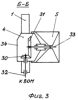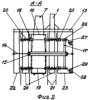 Редуктор 4 включает пару конических шестерен 30 и 31 (фиг.3). Шестерня 30 закреплена на ведущем валу 32, соединенном с ВОМ трактора, а шестерня 31 – на ведомом валу 33. Кроме того, на валу 33 установлен ведущий шкив 5 перекрестного ремня 7, через который приводится во вращение подбирающий барабан 2. Корпус 34 редуктора 4 соединен жестко с рамой 1 оборачивателя и вмонтирован в ведущий шкив 5.
