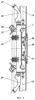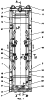 Устройство для чистки дверей коксовых печей (см. фиг.1 и 2) содержит каркас, выполненный в виде сварной конструкции из двух пар вертикальных направляющих 1 и 2, которые соединены между собой вверху рамой 3, а внизу – горизонтальными направляющими 4, каретки 5 и 6, подвижно установленные в соответствующих направляющих 1 и 2 посредством роликов 7, тележку 8, которая подвижно установлена в горизонтальных направляющих 4 посредством роликов 9 (см. фиг.8), и привод для возвратно-поступательного перемещения кареток 5 и 6 и тележки 8, включающий смонтированные на раме 3 мотор-редуктор 10, приводную 11 и направляющие 12 и 13 звездочки, тяговую цепь 14, огибающую указанные звездочки и соединяющую между собой каретки 5 и 6 в верхней части, и тяговую цепь 15, огибающую звездочки 16 и 17 и соединяющую между собой каретки 5 и 6 в нижней части. На тяговой цепи 15 закреплены поводки 18 и 19, взаимодействующие с тележкой 8 для ее возвратно-поступательного перемещения в горизонтальных направляющих 4.