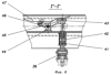 На тележке 8 (см. фиг.8) установлен рабочий орган чистки нижнего кирпичедержателя 51, который выполнен в виде съемного U-образного скребка 52, закрепляемого на основании 53. Последнее посредством шарнирных опор 54 и 55 закреплено на тележке 8 и подпружинено пружиной сжатия 56, установленной на тележке 8.