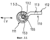 В шарнирной части 111 части 110 петли, как в первом примере выполнения, также предусмотрено резьбовое отверстие 157 для введения стопорного винта, чтобы соответствующую часть 155 с удлиненным отверстием 152 зафиксировать в центральном отверстии 153 шарнирной части 111 (см. также фиг.11).