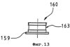 Между обеими эксцентриковыми втулками внутри центрального отверстия 153 расположен элемент 155, не видимый на представленном виде и поэтому показанный на чертеже пунктиром; в этом элементе выполнено удлиненное отверстие 152 (см. также фиг.11). Эксцентриковая втулка 160 образует на одной своей торцевой стороне окружную отбортовку 159, которая соответствует описанной выше. Эксцентриковая втулка 163 также имеет в своей цилиндрической области, которая выступает в центральное отверстие 153, окружной паз 163, который служит для установки эксцентриковой втулки. Для этого снаружи через отверстия 114, предусмотренные в шарнирной части 111, вводятся соответствующие винты.