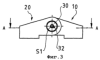 На фиг.3 показан вид снизу петли по фиг.2 в направлении оси S1 шарнира. Можно видеть, что палец 30 петли имеет центральную шестигранную выемку для захвата соответствующим шестигранным ключом, чтобы осуществить сдвиг петли.