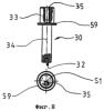 фиг.8 – палец петли по фиг.1 и 2 с частичным разрезом, вид сбоку и сверху;