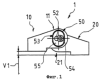 Каждая петля включает в себя по одному эксцентриковому устройству 50, которое размещено в имеющем овальную форму в сечении центральном отверстии 53 шарнирной части 11 первой части 10 петли. Оно имеет выступ 51, который проходит через удлиненное отверстие 52, которое предусмотрено в конструктивном элементе 55.
