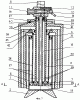 Для сбора сжатого воздуха в каждом следующем по ходу его движения кольцевом канале 39 в верхних торцах внутренних кожухов выполнены канал или каналы 42 (фиг.4), связанные с кольцевым каналом 39, а для обеспечения направления движения сжатого воздуха вдоль наружной поверхности сопряженного с внутренним кожухом 30 внутреннего корпуса 28 выполнена кольцевая щель 43, образованная внутренней поверхностью втулки (от нижнего торца кольцевого канала до нижнего торца втулки) и наружной поверхностью внутреннего выдвижного корпуса 28, при этом внутренняя поверхность втулки от верхнего торца кольцевого канала до верхнего торца втулки жестко связана с наружной поверхностью внутреннего выдвижного корпуса.