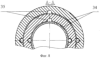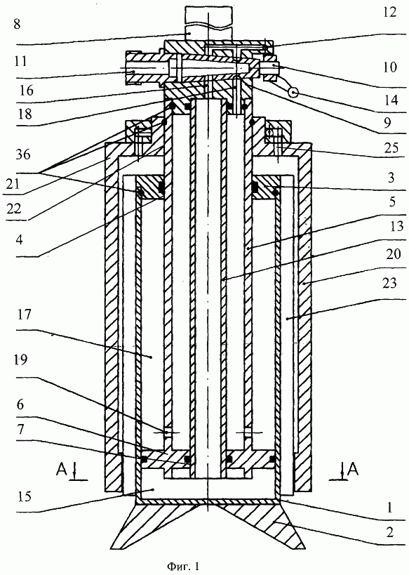 В дне кольцевого канала втулки наружного кожуха 31 выполнено отверстие 40 (или отверстия), через которое отработанный сжатый воздух из выпускной магистрали 12 по дополнительному каналу или каналам (на фиг. не показано) подается в кольцевой канал.