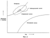 Вышеприведенные виды потока получены с помощью увеличения скорости газа. Для газовых скважин кольцевой поток, как полагают, находится выше основной части труб, в то время как для нефтяных скважин прерывистый поток превалирует в верхней части труб. В условиях на входе трубы преимущественно присутствует пузырьковый поток, следовательно, в трубе, поскольку accoциированный газ выходит из нефти, когда давление падает, происходит переход от пузырькового потока к прерывистому потоку. Режимы потоков в горизонтальном потоке проиллюстрированы на фиг.4 и являются следующими: пузырьковый поток, в котором пузырьки имеют тенденцию к флотации на верхней части воды; слоистый поток, в котором жидкость течет вдоль нижней части трубы, и газовые потоки – наверху; ударный или пульсирующий поток, в котором большие пенистые скопления жидкости чередуются с большими газовыми мешками; кольцевой поток, в котором жидкостное кольцо присоединено к стенке трубы с газом, продуваемым через нее, обычно слой на дне намного толще, чем в верхней части.